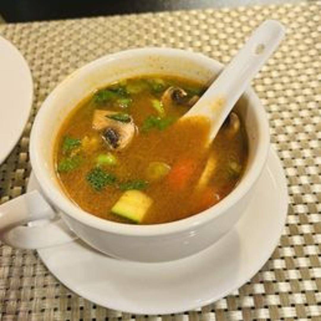 A hot and sour Thai soup infused with lemongrass, galangal, kaffir lime leaves, mushrooms, tomatoes, and chili peppers. This flavorful and aromatic soup is typically served with your choice of protein (specify if applicable - e.g., shrimp, chicken, tofu).