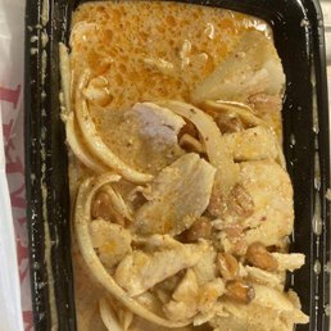 A rich, mild, and aromatic Thai curry influenced by Persian and Indian flavors. It features a unique blend of spices like cardamom, cinnamon, cloves, and star anise, simmered in coconut milk with peanuts, potatoes, and onions. Known for its subtly sweet and complex savory taste, typically served with a choice of meat or tofu.