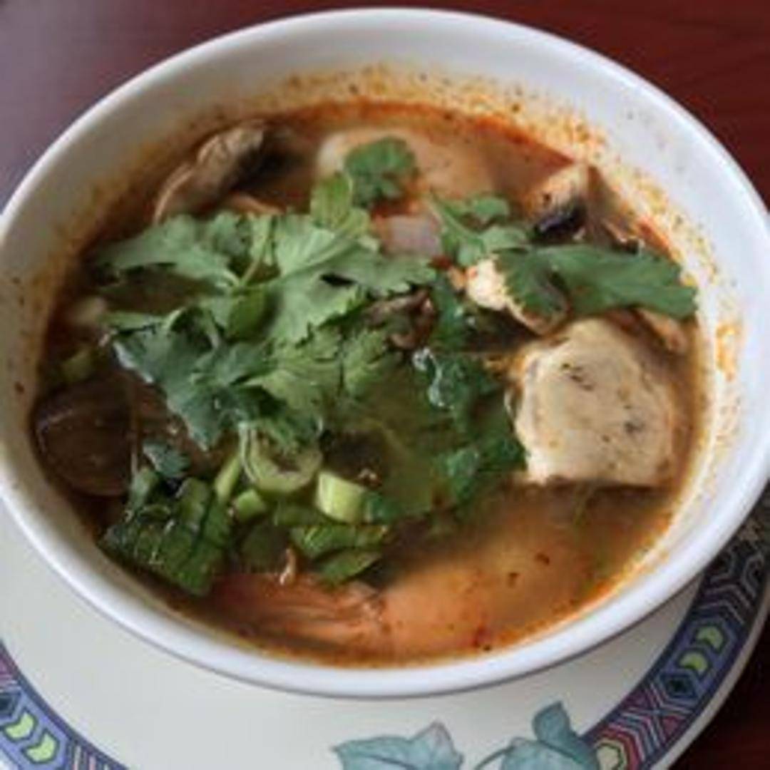 A classic hot and sour Thai soup, celebrated for its bold and invigorating flavors. This intensely aromatic broth is infused with fragrant lemongrass, galangal, kaffir lime leaves, and lime juice, balanced with a hint of chili paste. Loaded with fresh mushrooms and typically shrimp, it offers a distinctive tangy, spicy, and herbaceous experience.