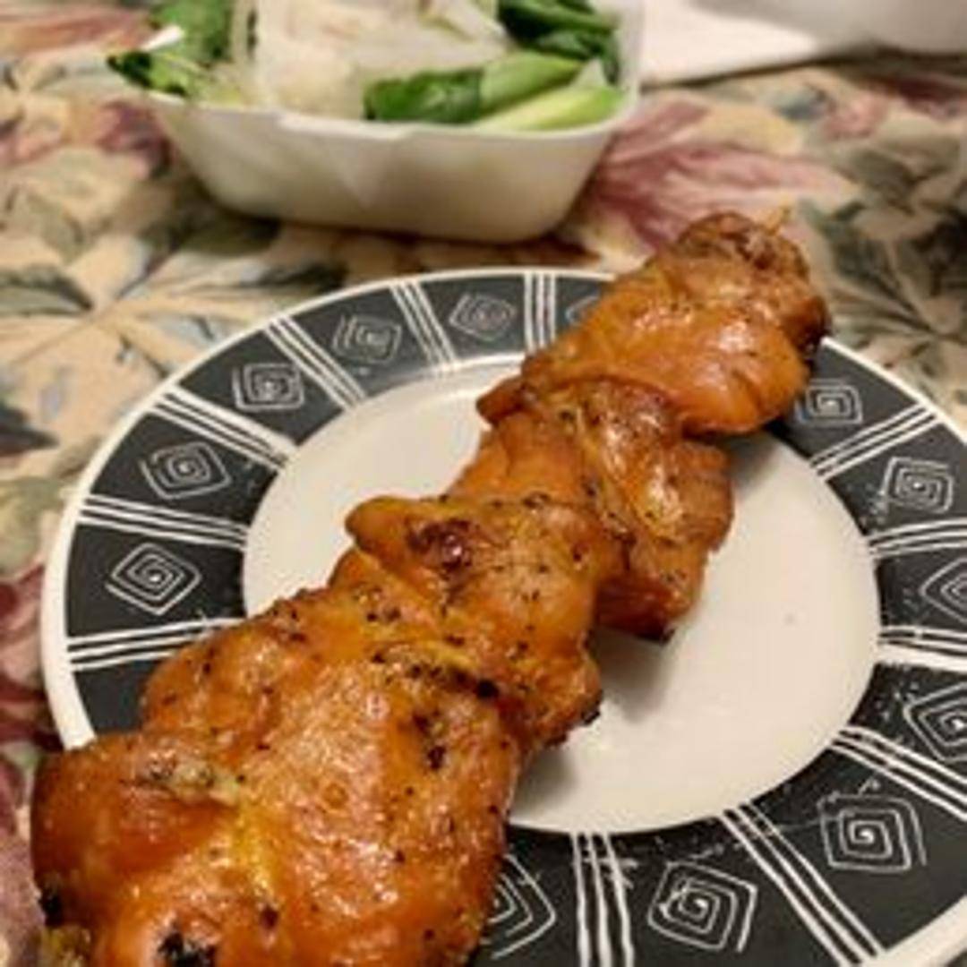 A beloved Thai grilled chicken dish, known for its tender, juicy meat and beautifully charred, flavorful skin. Chicken is marinated overnight in a fragrant blend of lemongrass, garlic, white pepper, and coriander root, then expertly grilled to perfection. This smoky and savory dish is often served with a spicy dipping sauce, offering an authentic taste of Thai barbecue.