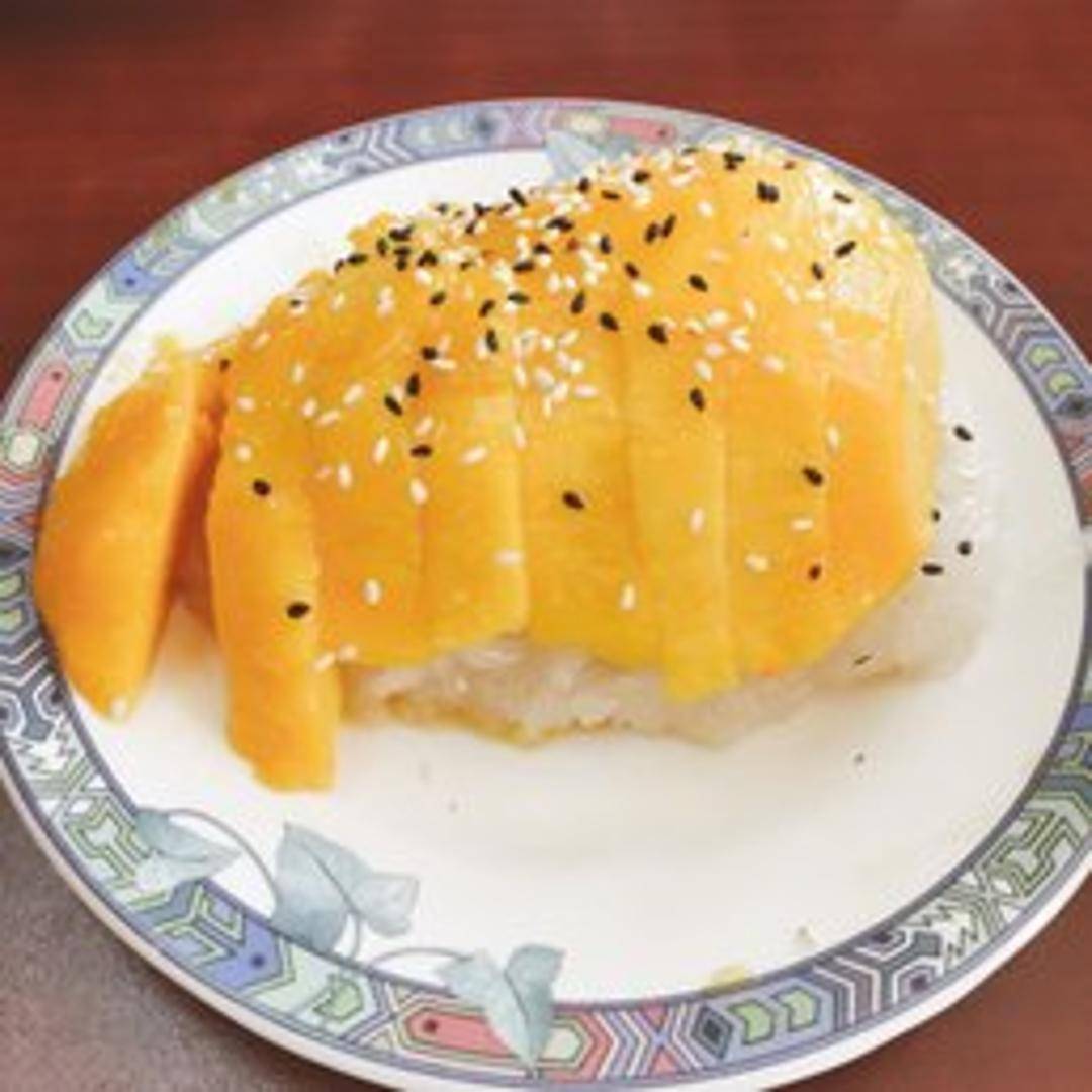 A classic and beloved Thai dessert featuring sweet, glutinous sticky rice infused with creamy coconut milk and a hint of sugar, traditionally served alongside slices of ripe, fresh mango. Often garnished with toasted sesame seeds or crispy mung beans for added texture.