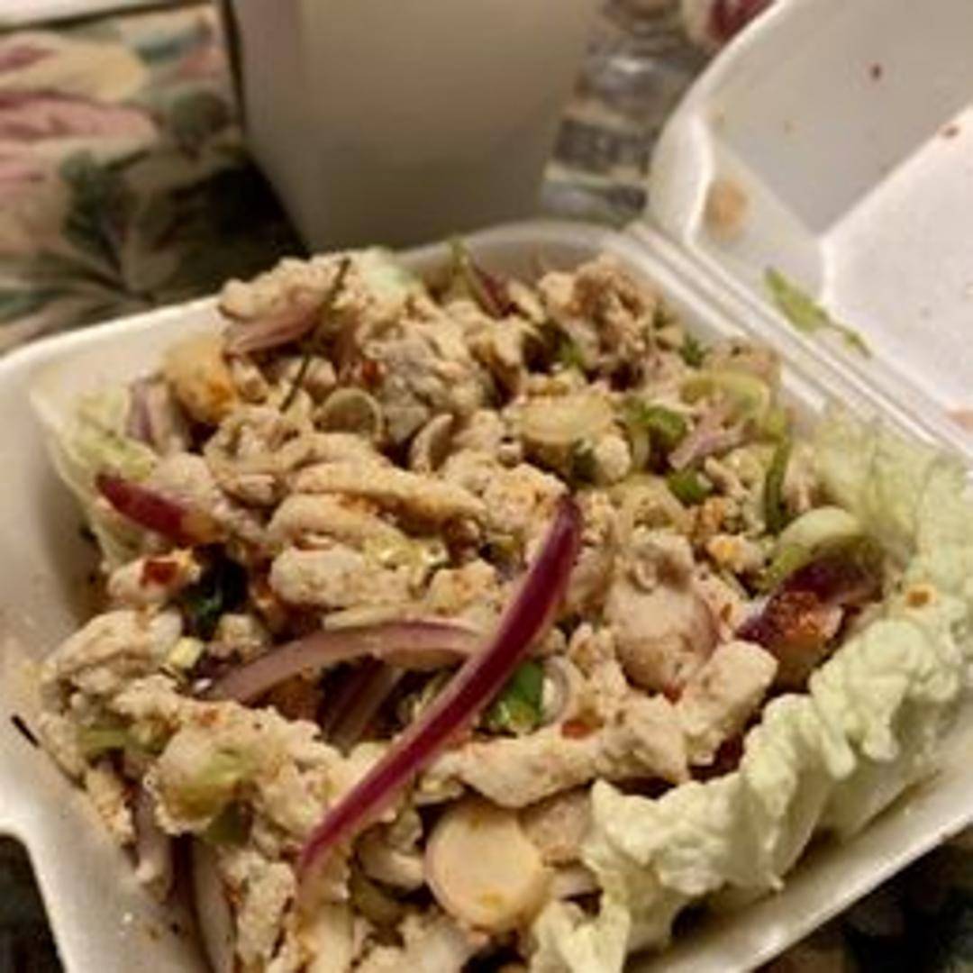 A refreshing and zesty Northeastern Thai minced meat salad. Your choice of finely minced protein (chicken, pork, or beef) is seasoned with lime juice, fish sauce, toasted ground rice powder, and a vibrant mix of fresh herbs like mint, cilantro, and red onion. It offers a unique balance of spicy, sour, and savory notes, typically served with sticky rice and crisp lettuce.