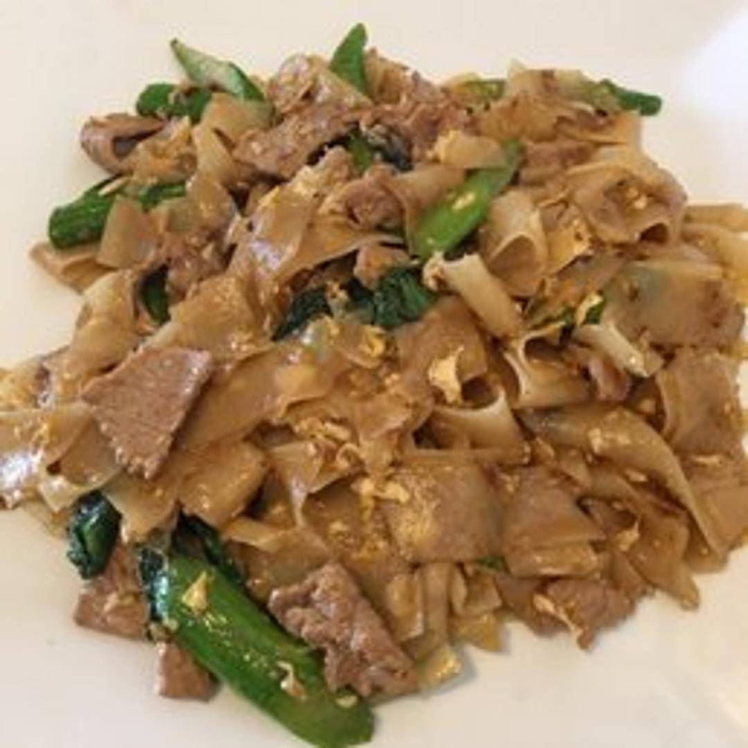 Wide rice noodles stir-fried with egg, Chinese broccoli, and your choice of protein in a sweet soy sauce-based sauce. A popular and satisfying noodle dish.