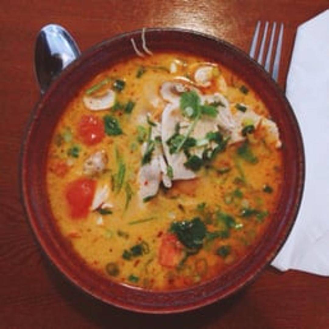 A hot and sour soup with shrimp, lemongrass, galangal, kaffir lime leaves, chili peppers, and mushrooms. A classic Thai soup that is both flavorful and invigorating.