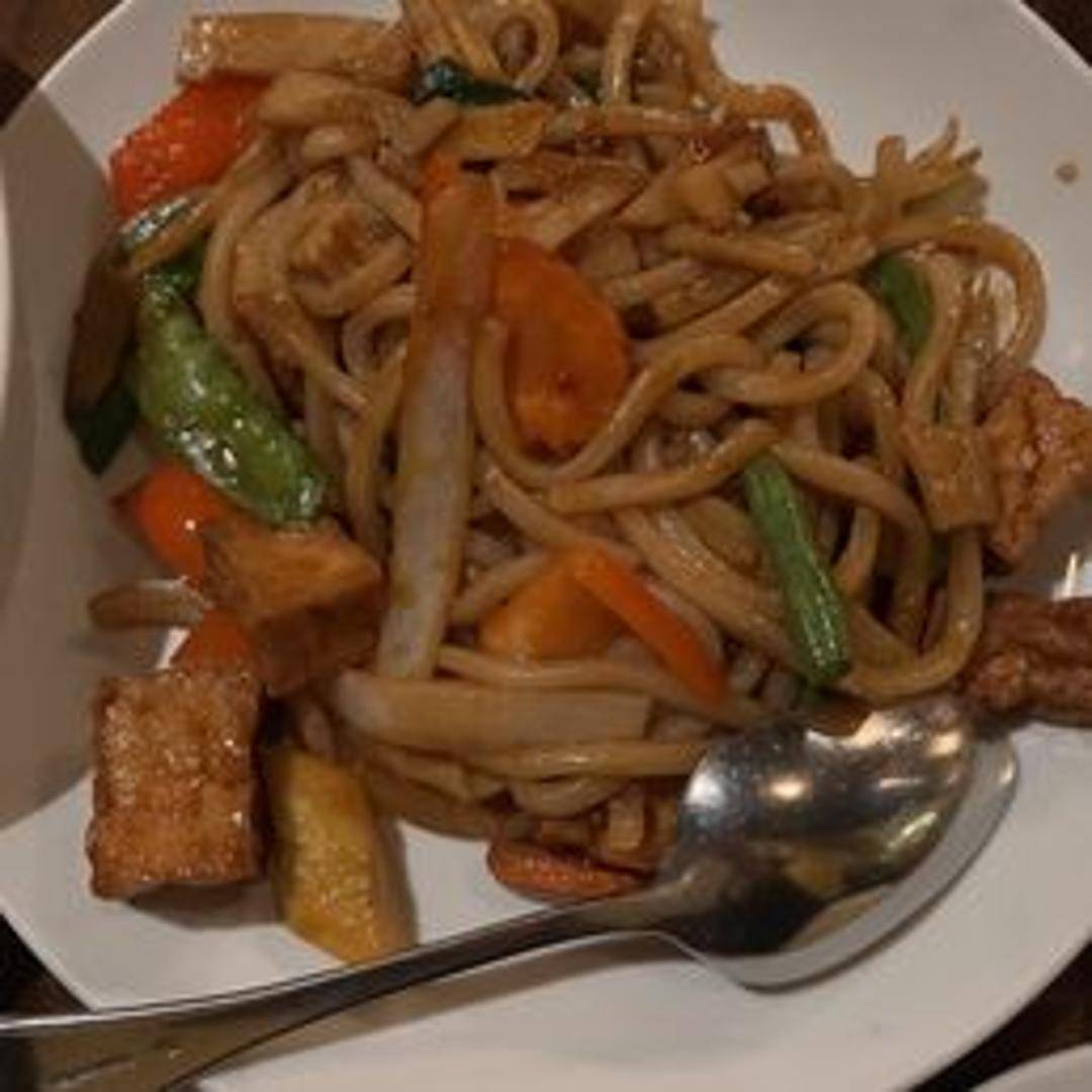Thick, chewy udon noodles stir-fried in a spicy sauce with mixed vegetables and your choice of protein (chicken, pork, beef, or tofu).
