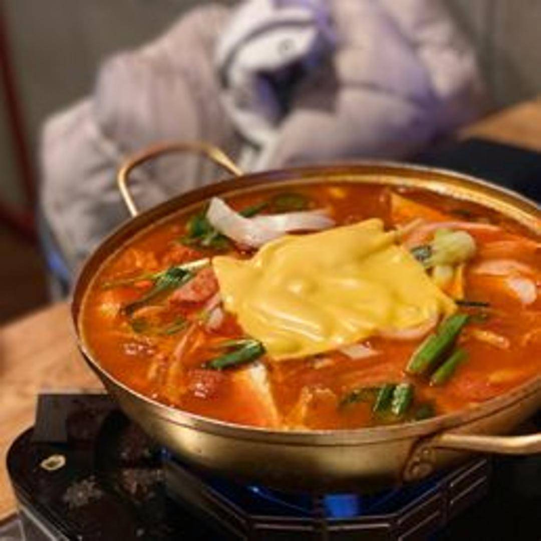 Budae Jjigae. A hearty and flavorful stew that originated during the Korean War, featuring a combination of Spam, sausage, ramen noodles, kimchi, baked beans, and vegetables in a spicy broth. A unique and satisfying fusion dish.