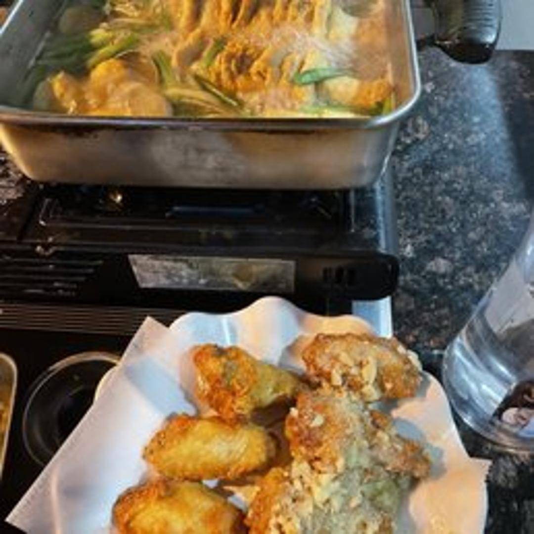 A warm and hearty soup featuring Korean fish cakes simmered in a flavorful broth. Often includes vegetables like radish and scallions for added depth and texture. A classic Korean comfort food.