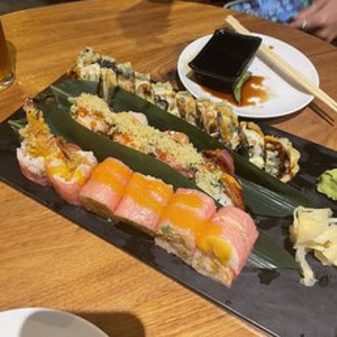 Pounce on the bold flavors of The 1126 Restaurant's Tiger Roll. This striking sushi creation often features succulent shrimp tempura and creamy avocado inside, beautifully topped with a vibrant layer of spicy tuna or salmon. Drizzled with a fiery yet balanced sauce and garnished with a touch of crunch, its distinctive stripes of flavor and texture make it a powerfully delicious choice.
