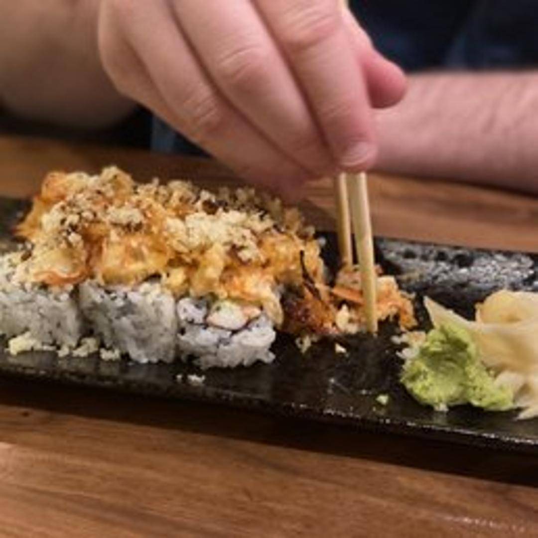 An exciting and visually striking sushi roll that typically includes a base of fresh fish and avocado, topped with a generous mound of baked or broiled seafood (often scallops or mixed fish) tossed in a spicy, creamy sauce. The 'volcano' effect is achieved by lightly charring or torching the top, creating a rich, savory, and subtly smoky flavor.