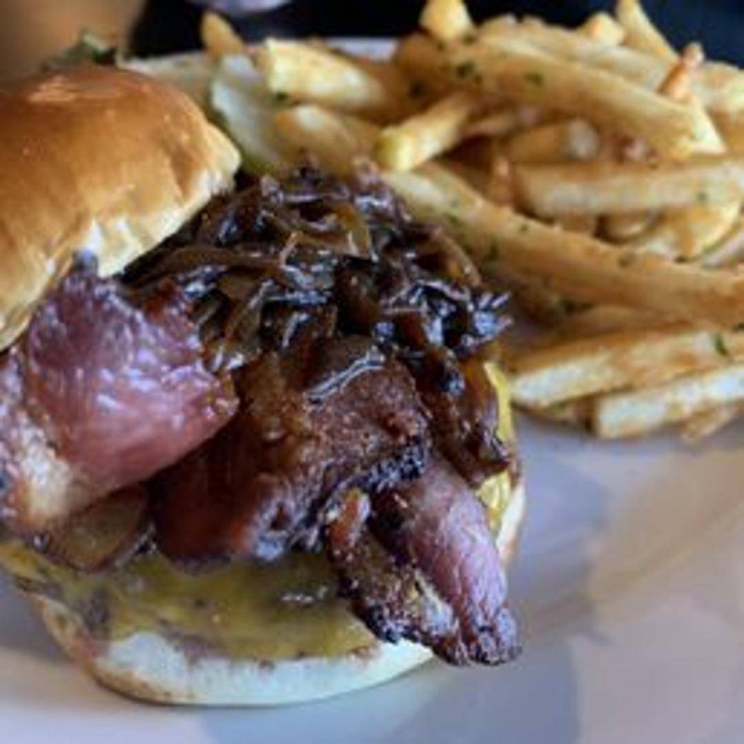 Two half-pound patties, cheddar cheese, swiss cheese, bacon, lettuce, tomato, onion, and our special sauce on a toasted brioche bun.