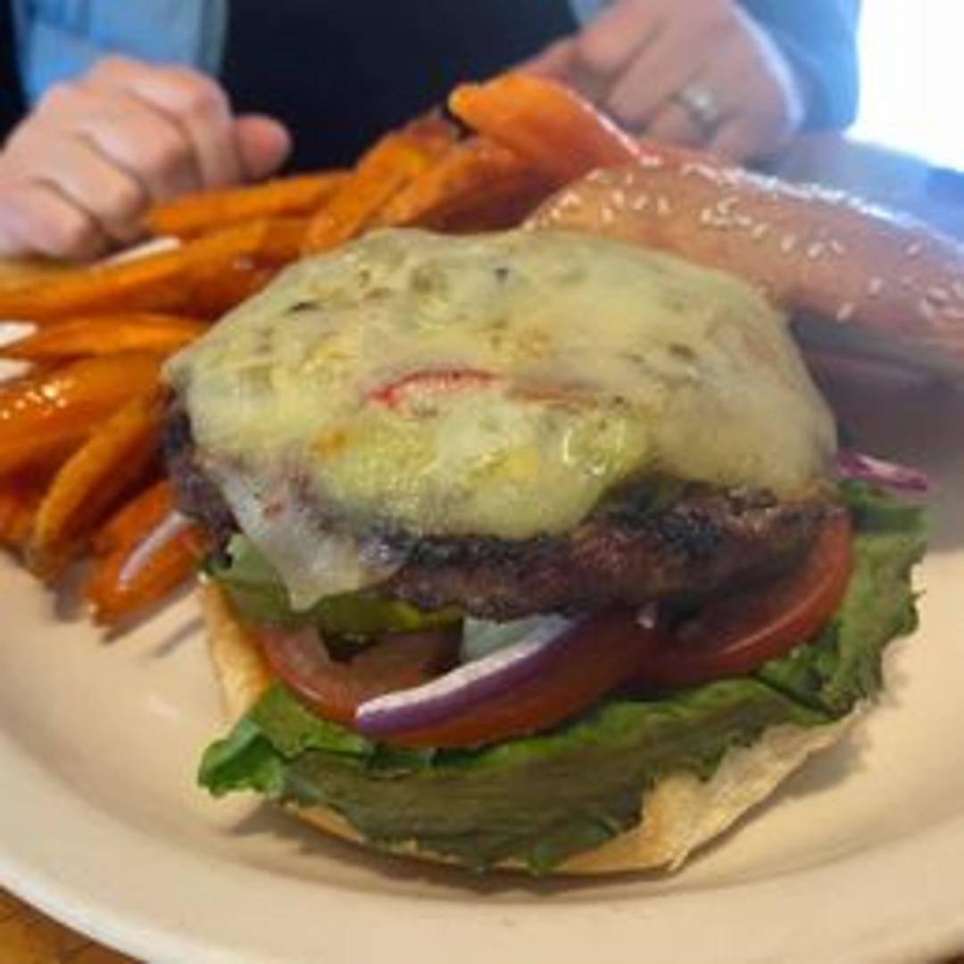A flavorful buffalo patty served on a toasted bun with your choice of toppings. Served with your choice of side.