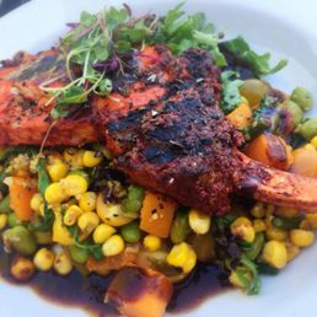 Thick-cut, bone-in pork chops, grilled to perfection and served with seasonal vegetables and a savory pan sauce.
