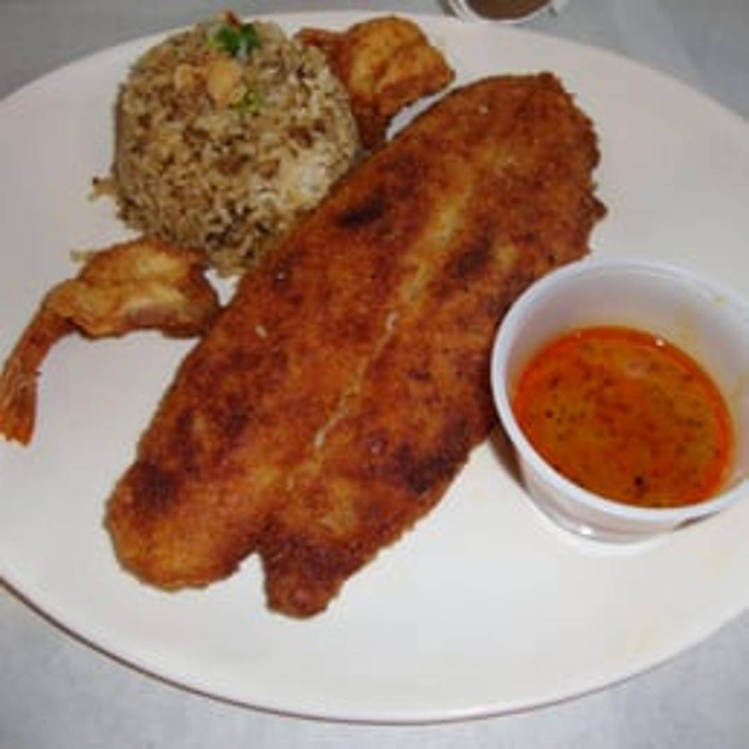 Pan-seared catfish fillet coated in a blend of Cajun spices, creating a blackened crust. Served with your choice of sides.