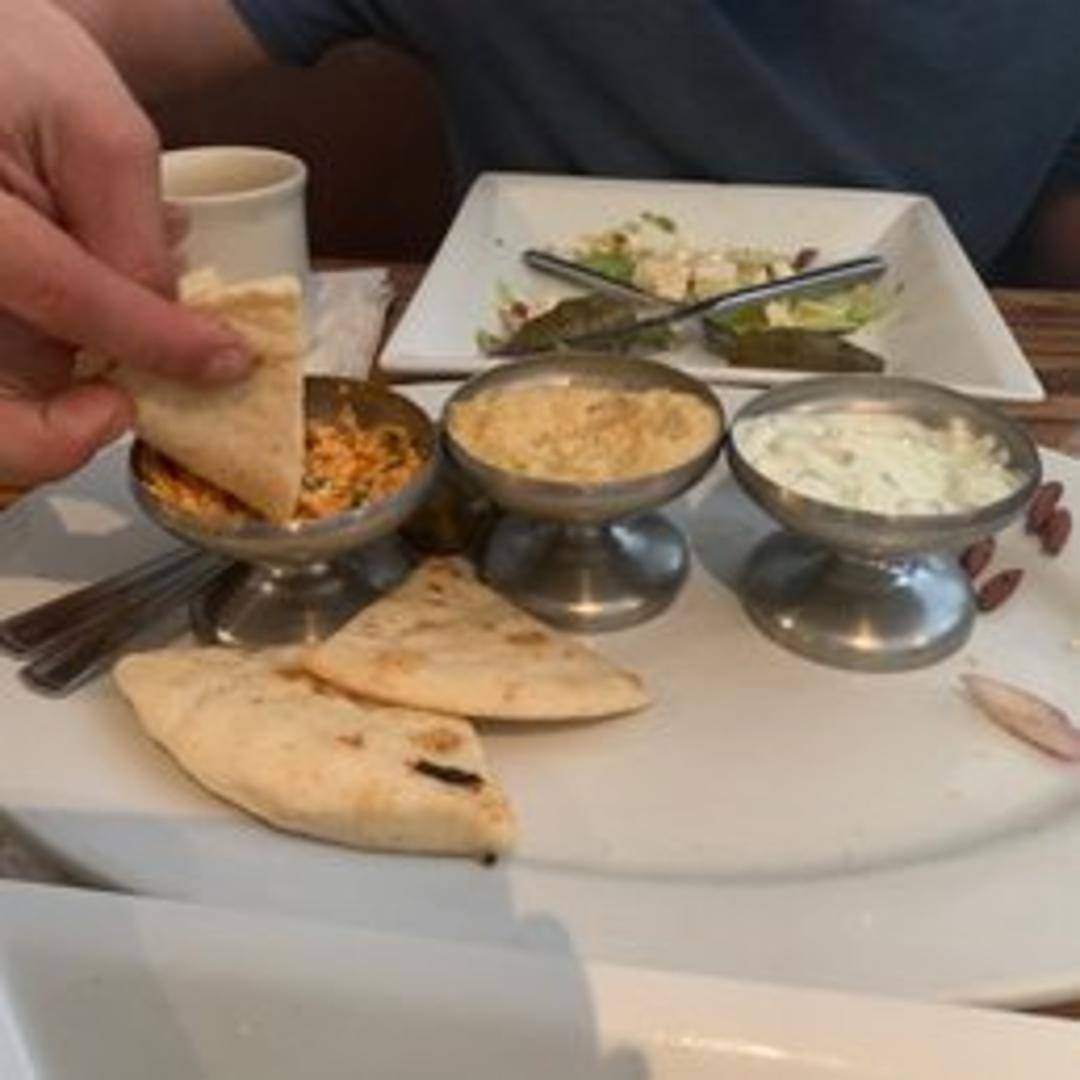 Feta cheese blended with roasted red peppers, herbs, and spices, creating a flavorful and slightly spicy dip. Served with pita bread.