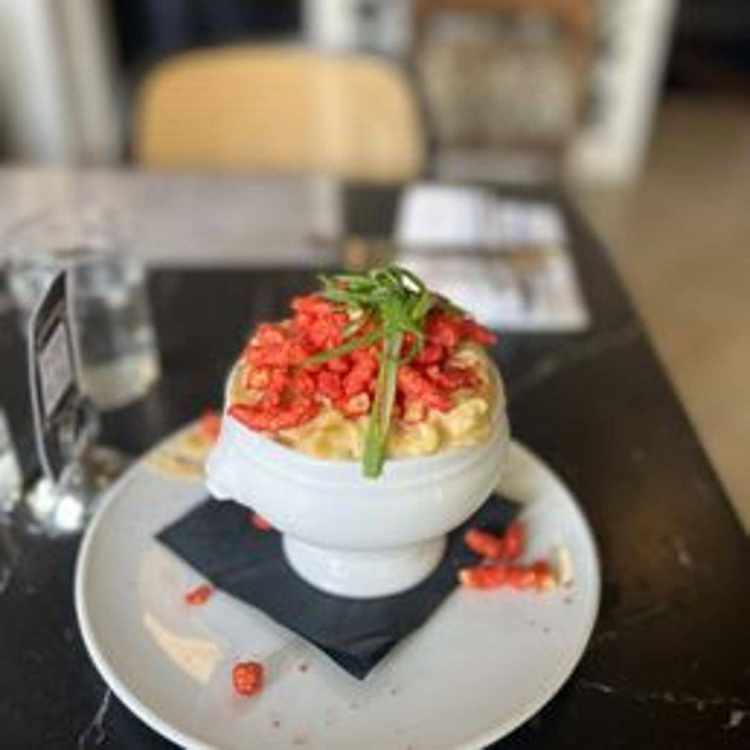Creamy macaroni and cheese, breaded and coated in crushed Cheetos, then deep-fried. Served with a side of dipping sauce.