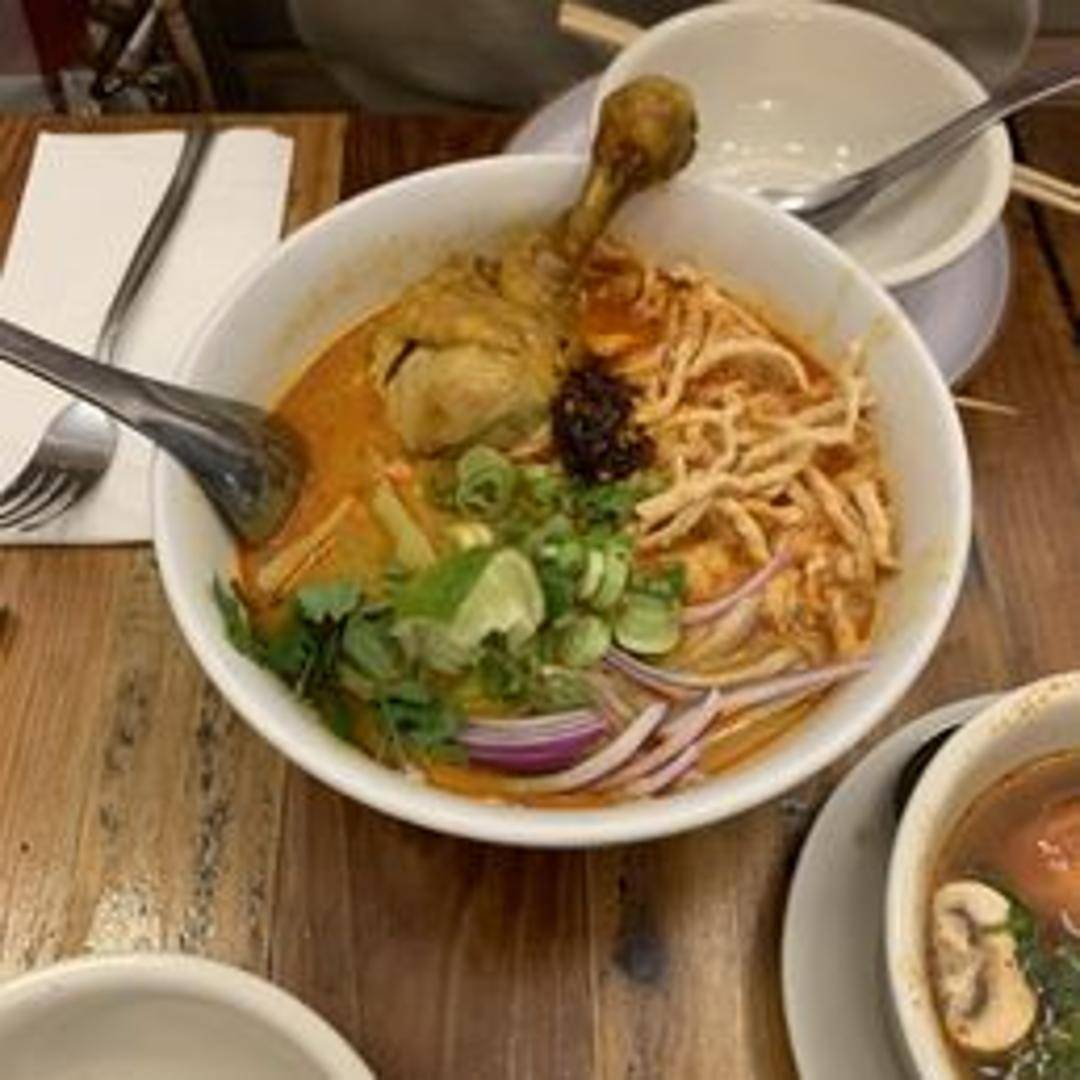 A Northern Thai specialty. Creamy coconut curry noodle soup with soft egg noodles, topped with crispy fried noodles, pickled mustard greens, shallots, and a wedge of lime. Choose your protein: chicken, beef, pork, tofu, or shrimp. A rich and comforting dish with a complex flavor profile.