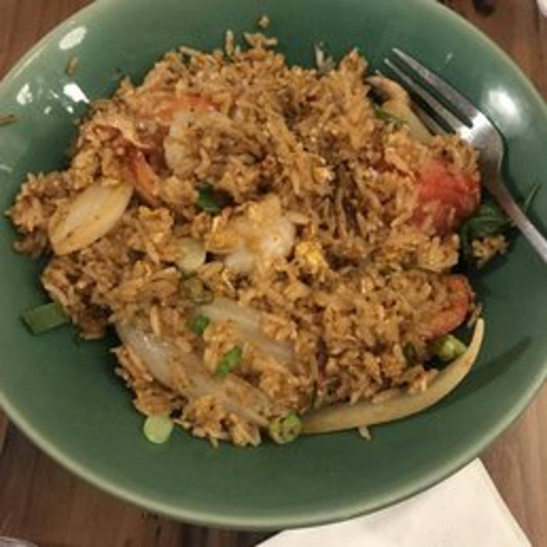 Savory fried rice infused with the distinct flavors of Tom Yum soup. Features fragrant rice stir-fried with shrimp, chicken, or tofu, lemongrass, galangal, kaffir lime leaves, chili, mushrooms, tomatoes, and onions. A balance of spicy, sour, and savory notes, topped with fresh cilantro.