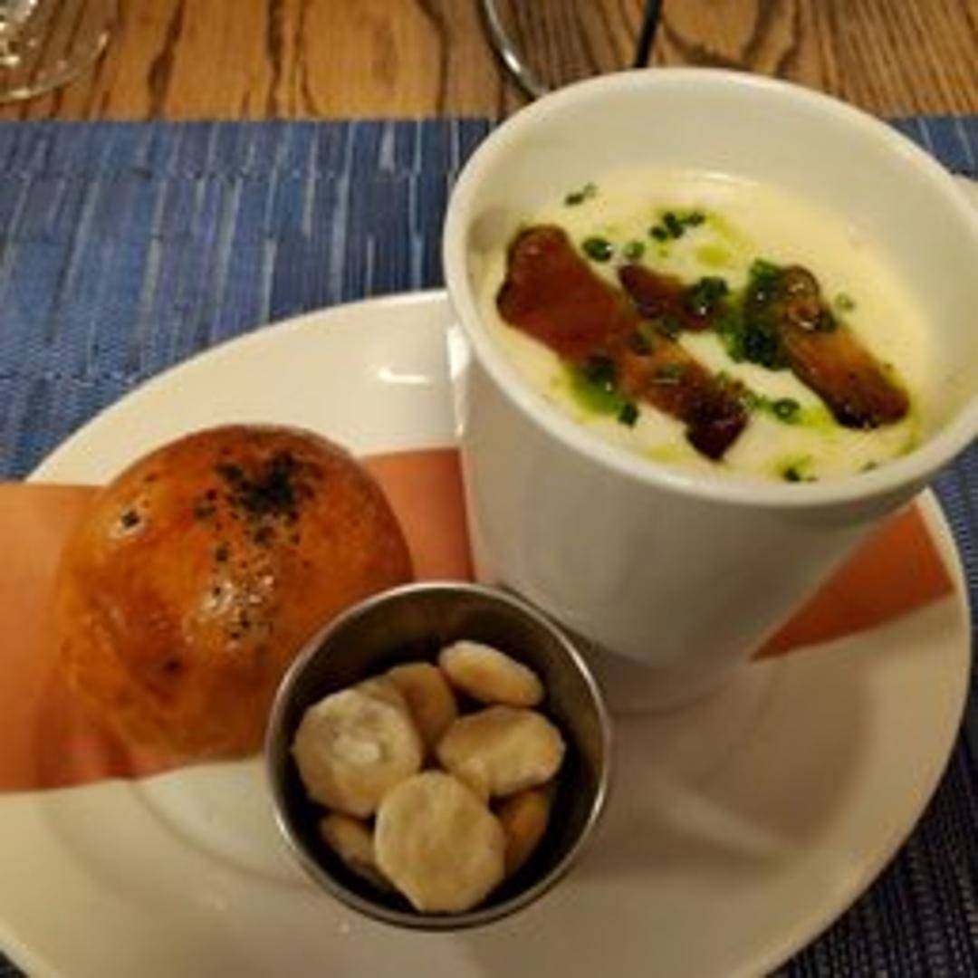 Slow-cooked Berkshire pork belly, crispy skin, served with [chef's choice] accompaniments.