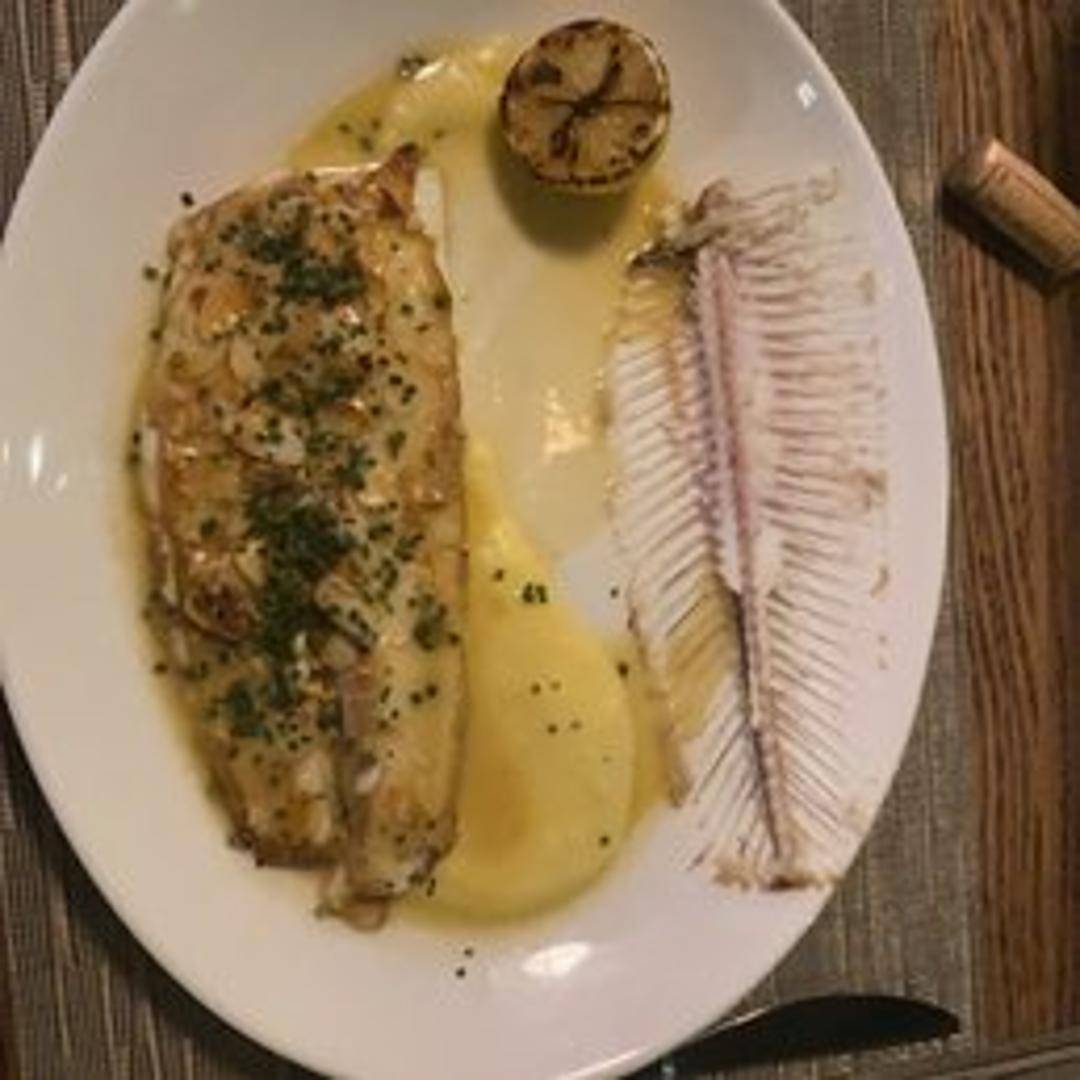 Delicate Dover sole pan-fried in browned butter with lemon and parsley. Served with seasonal vegetables.