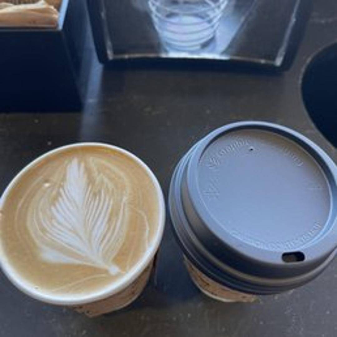 A signature latte featuring a blend of espresso with a unique syrup and milk combination, crafted in-house.