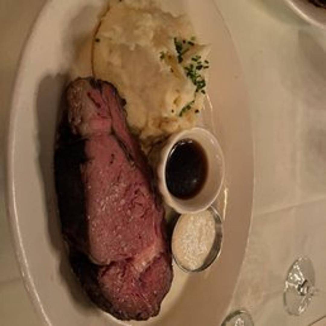 Indulge in our exquisite Prime Rib, a house specialty featuring a generous cut of slow-roasted beef, renowned for its exceptional tenderness and rich, savory flavor. Expertly seasoned and cooked to perfection, each succulent slice offers a melt-in-your-mouth experience. Served with its natural, savory au jus and a side of creamy horseradish sauce, this classic dish is a testament to quality and culinary excellence, prepared to your preferred temperature for an unforgettable meal.