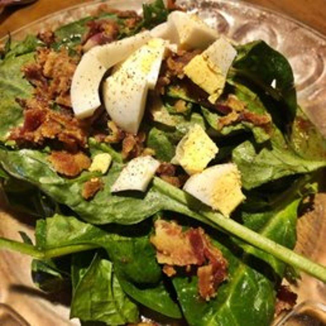 A fresh and vibrant Spinach Salad featuring crisp, tender baby spinach leaves as its base. Complemented by savory crumbled bacon, earthy sliced mushrooms, and often finished with a warm bacon vinaigrette, it's a delightful medley of textures and flavors.