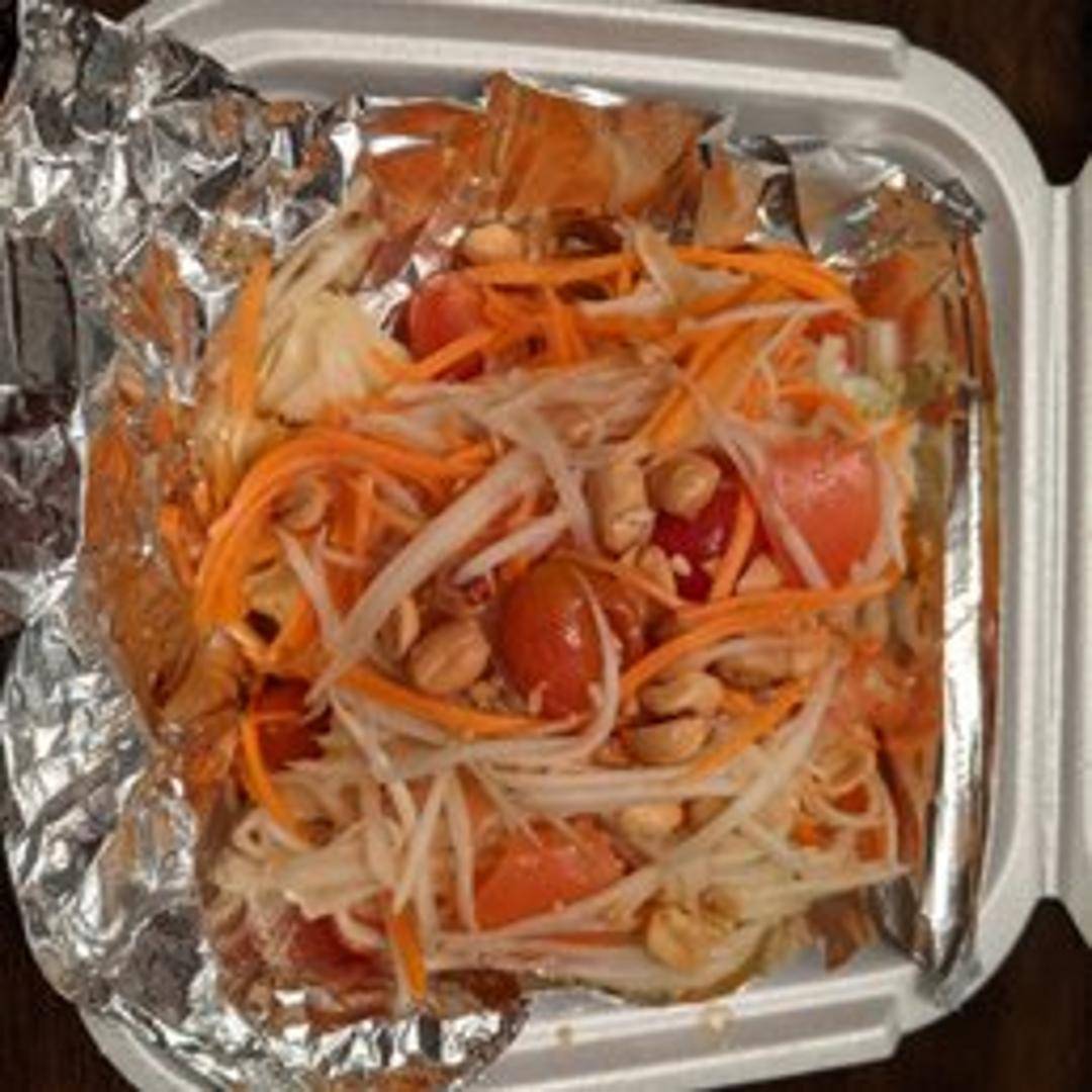 Shredded green papaya, tomatoes, green beans, peanuts, and a spicy lime dressing. May contain fish sauce.
