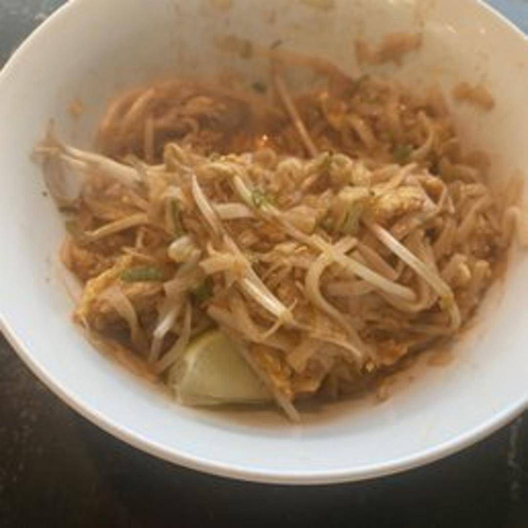 Classic Thai stir-fried rice noodles with your choice of protein (chicken, shrimp, tofu, or vegetables), egg, bean sprouts, scallions, and peanuts in a tangy tamarind sauce. Garnished with lime.