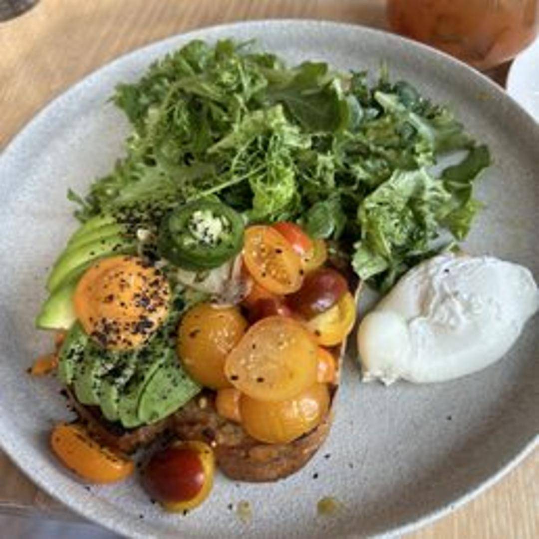 Toasted multigrain bread topped with smashed avocado, everything bagel seasoning, red pepper flakes, and a drizzle of olive oil. Add a fried egg for extra protein.