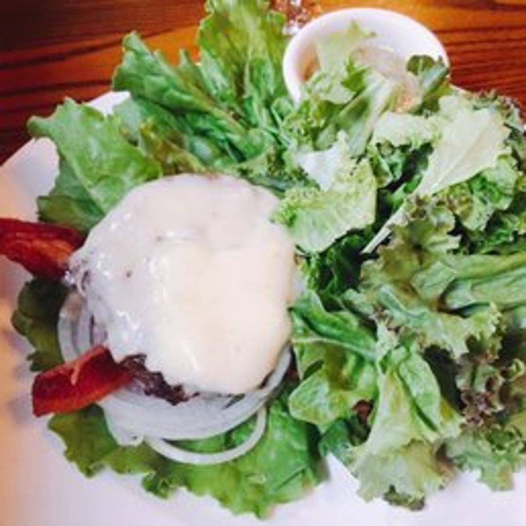 A classic cheeseburger featuring a juicy, grilled beef patty topped with melted American cheese, crisp lettuce, sliced tomato, thinly sliced red onion, and our signature Bistro sauce, served on a toasted sesame seed bun. Comes with your choice of side.