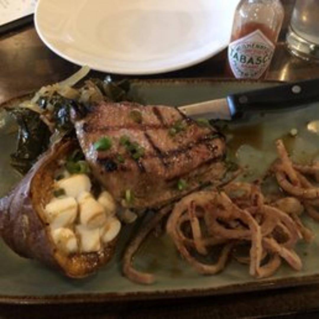 A thick-cut, bone-in pork chop grilled to juicy perfection. Served with your choice of two sides.