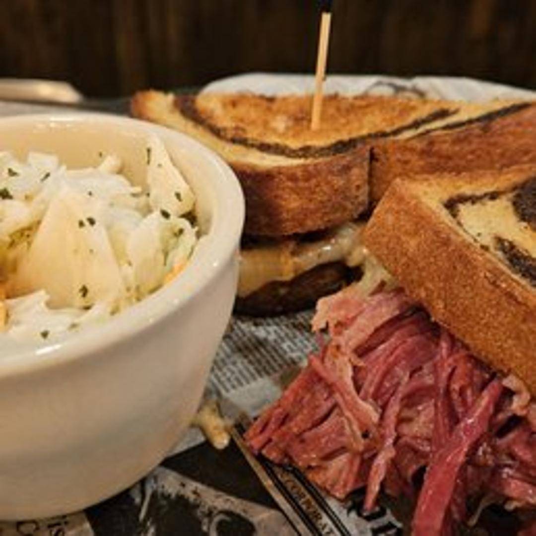 Corned beef, Swiss cheese, sauerkraut, and Thousand Island dressing grilled on rye bread. A classic and satisfying sandwich.