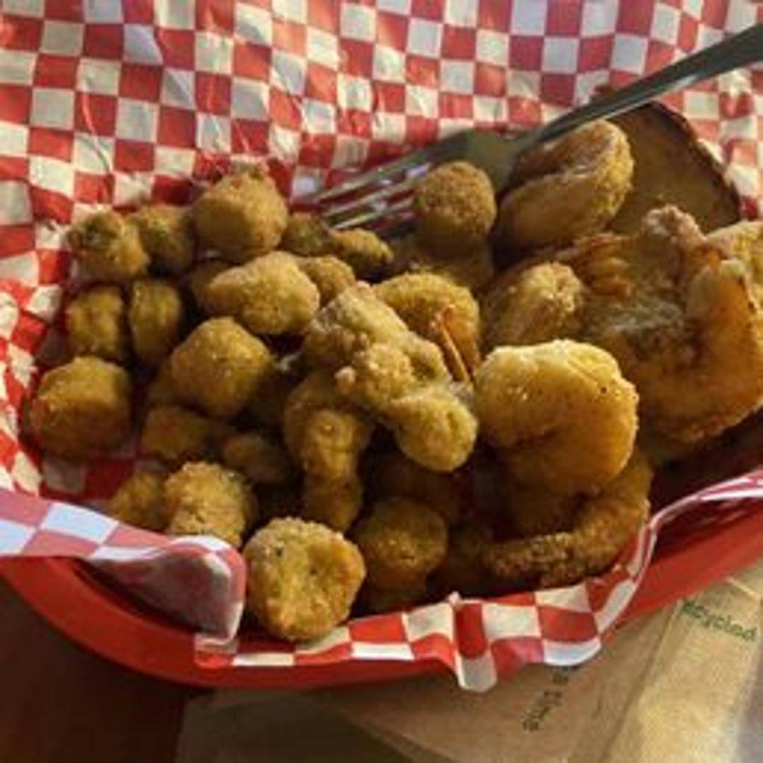 A generous portion of crispy, golden-fried shrimp. Served with cocktail sauce and your choice of two classic Blazing Chicken Shack II sides.