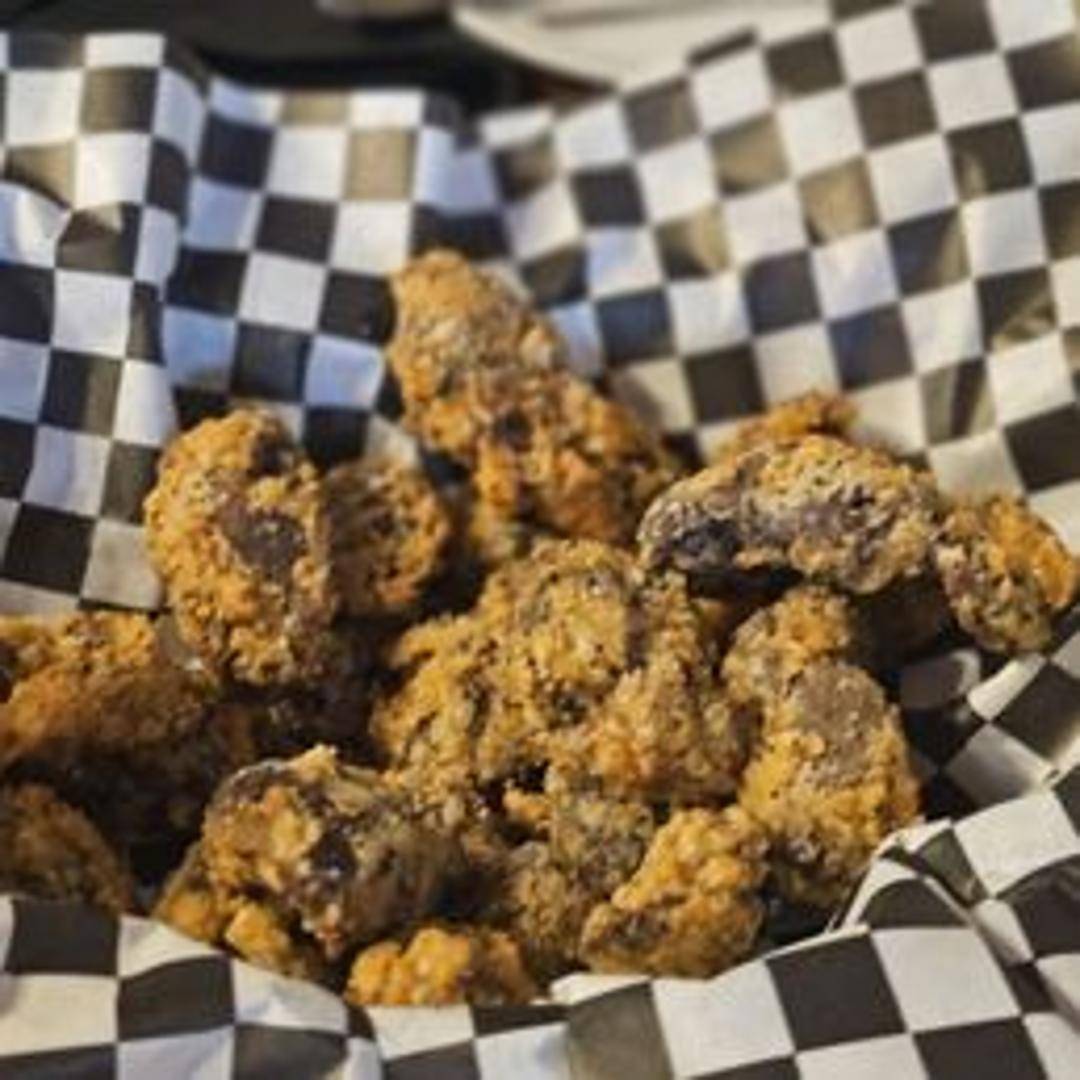 A basket of crispy, golden-brown fried chicken gizzards. Served with your choice of dipping sauce.
