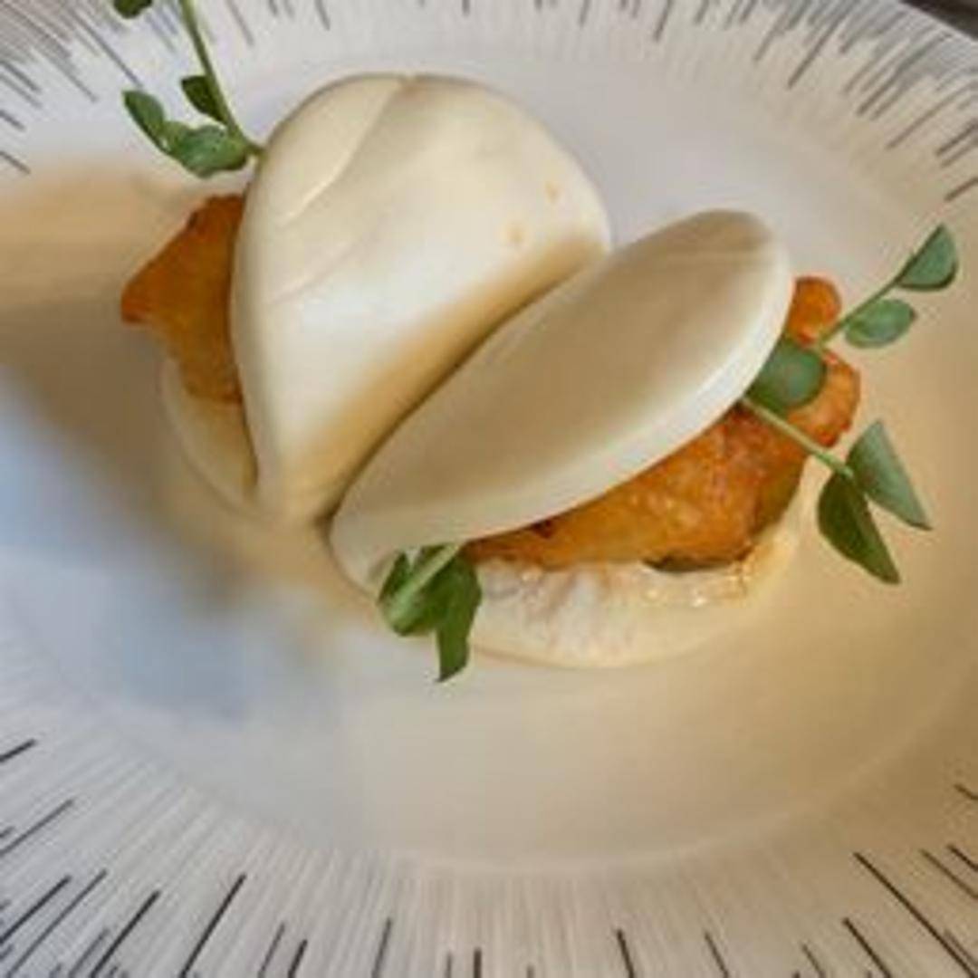 Steamed bao buns filled with tender, seasoned shrimp. Topped with fresh herbs, and a savory glaze for a burst of flavor in every bite. A delicious and portable snack or appetizer.
