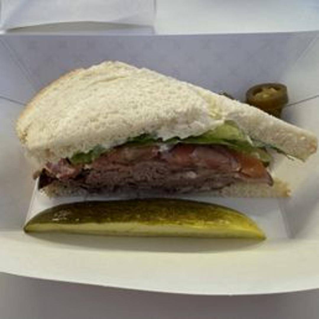 Thinly sliced, tender roast beef piled high on your choice of freshly baked bread. Served with lettuce, tomato, and your choice of mayonnaise, mustard, or horseradish sauce. A classic deli sandwich prepared with quality ingredients.