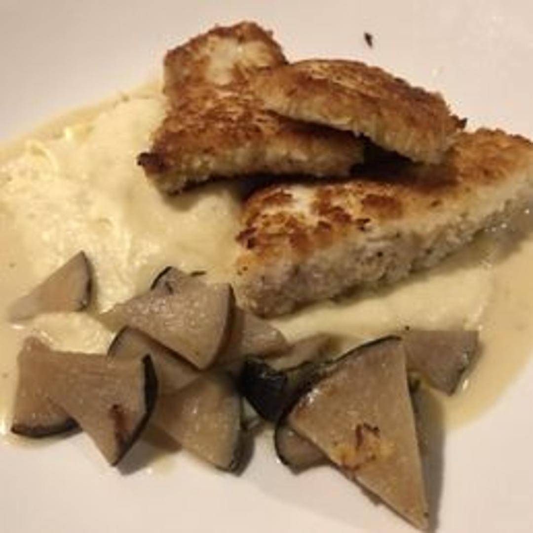 A clever and delicious twist on a classic, our Swordfish Schnitzel features a tender cut of swordfish, lightly breaded and pan-fried to a golden crisp perfection. The delicate, flaky fish is complemented by its crisp exterior, offering a refreshing and satisfying main course, often served with a bright lemon wedge.