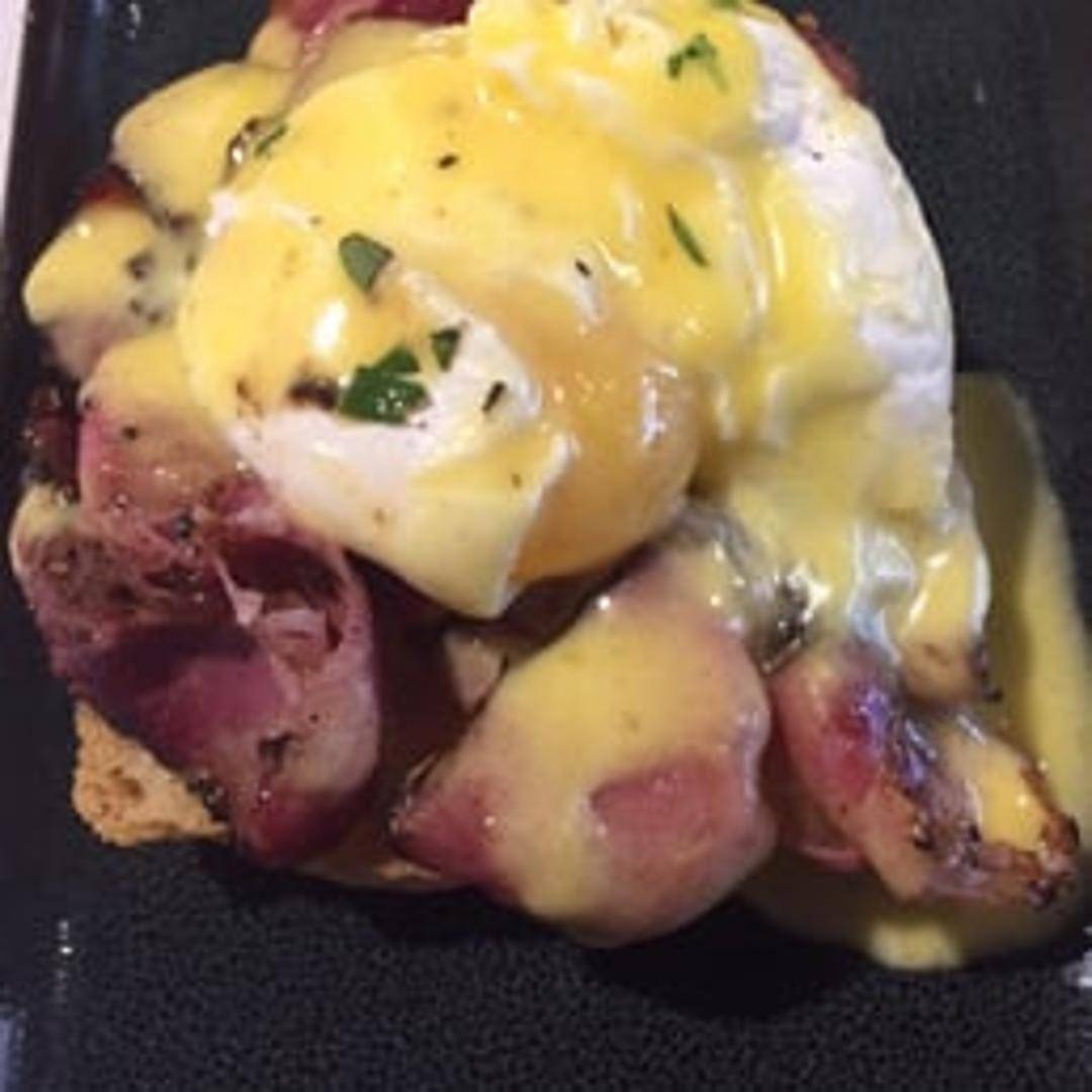 A classic brunch indulgence featuring perfectly poached eggs atop toasted English muffins and savory Canadian bacon. Lavishly draped with a rich, velvety hollandaise sauce, creating a harmonious blend of textures and flavors for the ultimate morning delight.