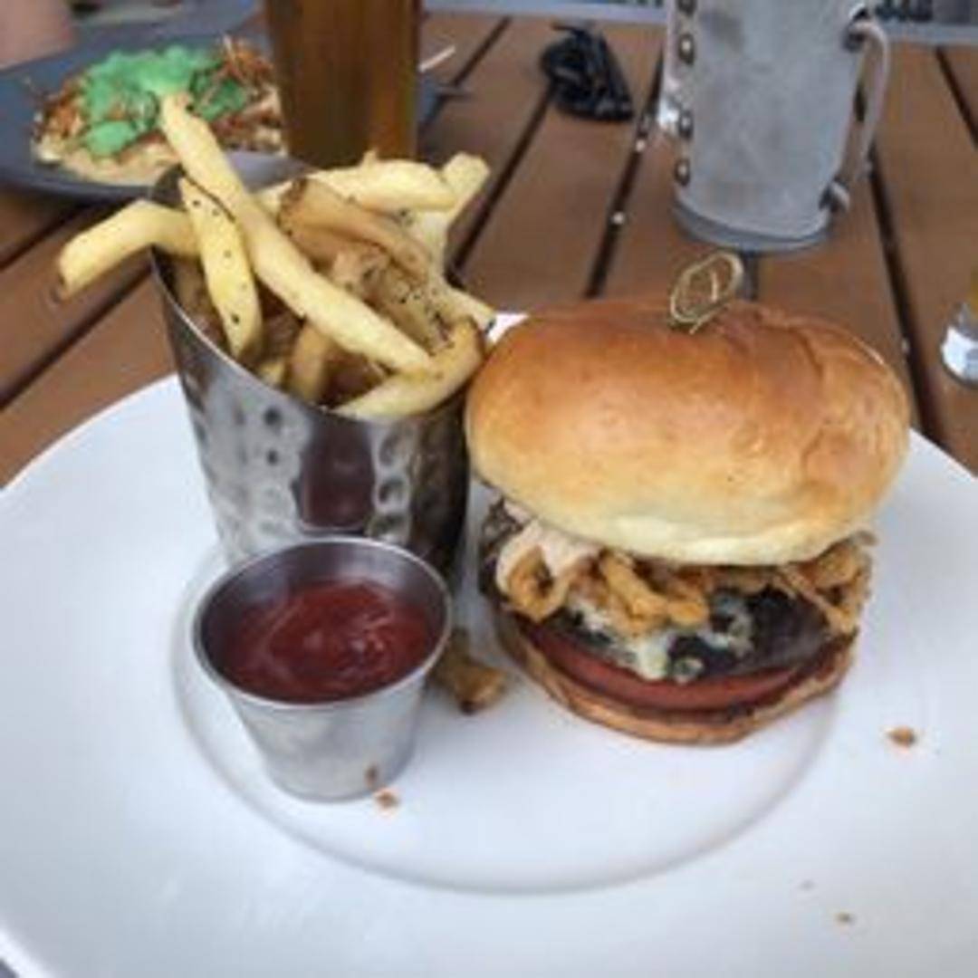 Our signature burger, crafted with a premium, juicy beef patty cooked to your preference. Topped with aged cheddar cheese, crispy bacon, fresh lettuce, vine-ripened tomato, and our special Burnham sauce, all served on a toasted brioche bun with a side of golden, seasoned fries.