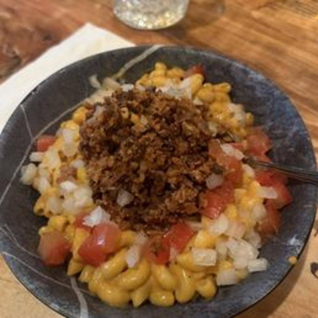 Our House Mac topped with our savory Sloppy Joe mixture.