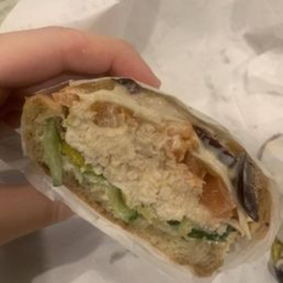 Classic tuna salad sandwich made with high-quality tuna, mayonnaise, celery, and seasonings, served on your choice of freshly baked bread. Typically includes crisp lettuce and ripe tomato slices.