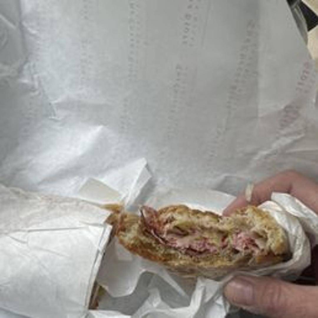 A hearty and flavorful sandwich featuring premium cured meats, likely including a selection of Italian salumi such as prosciutto, salami, and mortadella. Built on fresh bread, it's complemented by provolone cheese, roasted peppers, and a tangy vinaigrette or olive oil dressing. A substantial and satisfying choice for meat lovers.