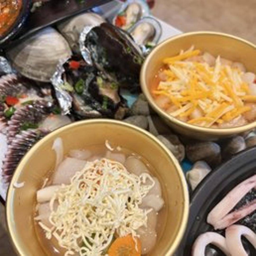 Savory rice cakes stir-fried with tender scallops. A flavorful combination of textures and seafood delight.