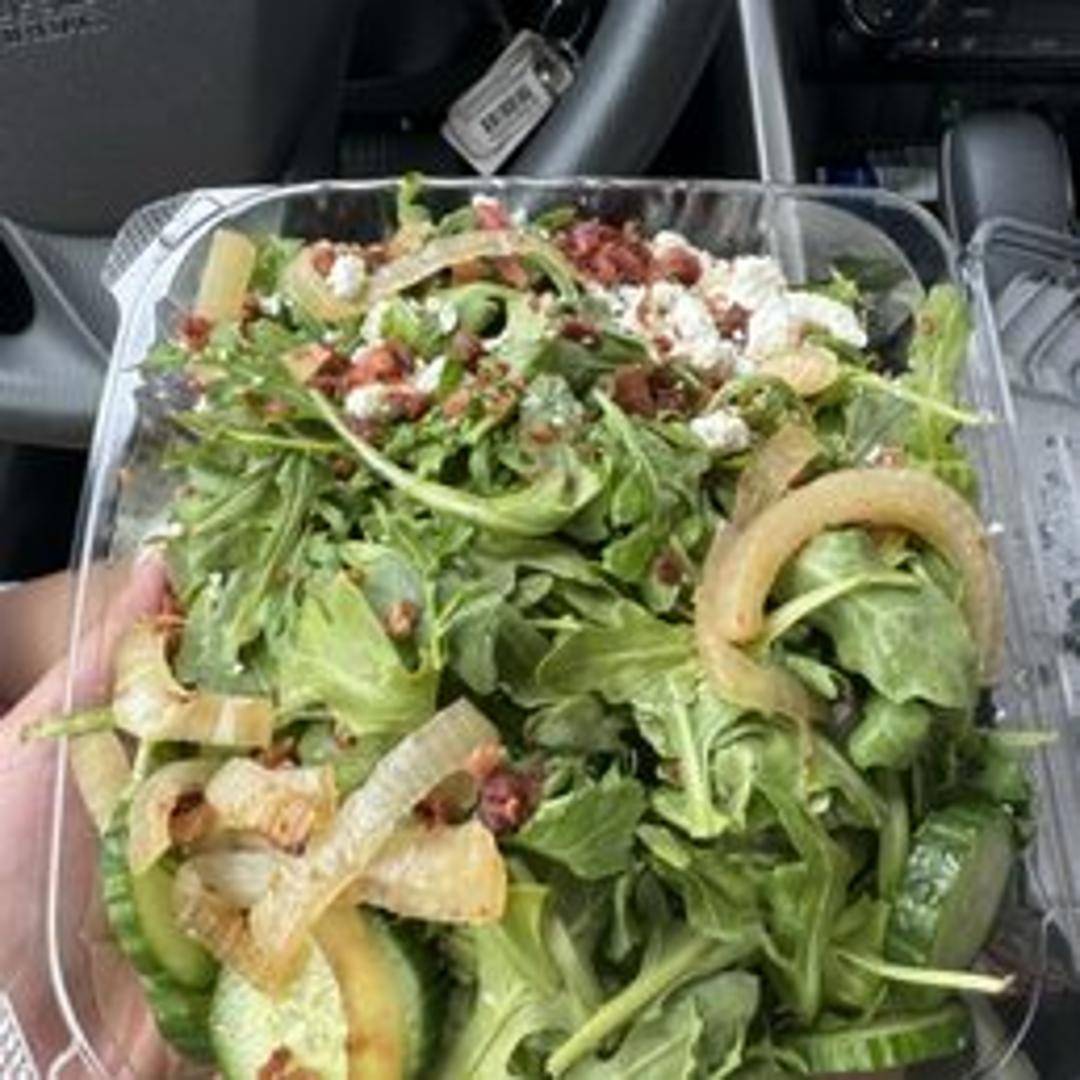 Fresh arugula tossed with [mention specific toppings like: shaved parmesan, cherry tomatoes, candied pecans, etc.], and a light [mention specific dressing like: lemon vinaigrette, balsamic glaze, etc.]. A refreshing and flavorful salad option.