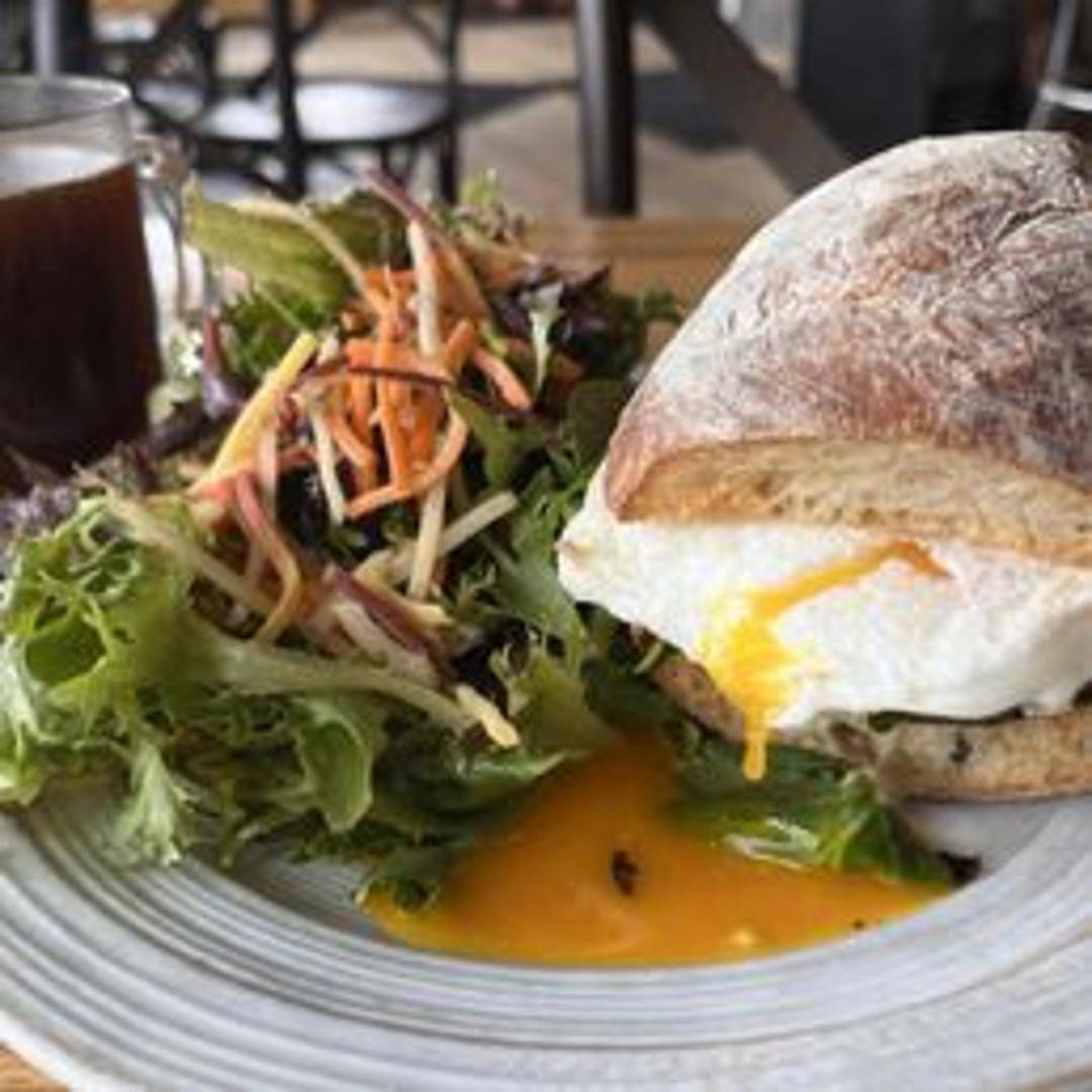 Egg, cheese, and your choice of meat (bacon, sausage, or ham) on a toasted croissant or bagel.