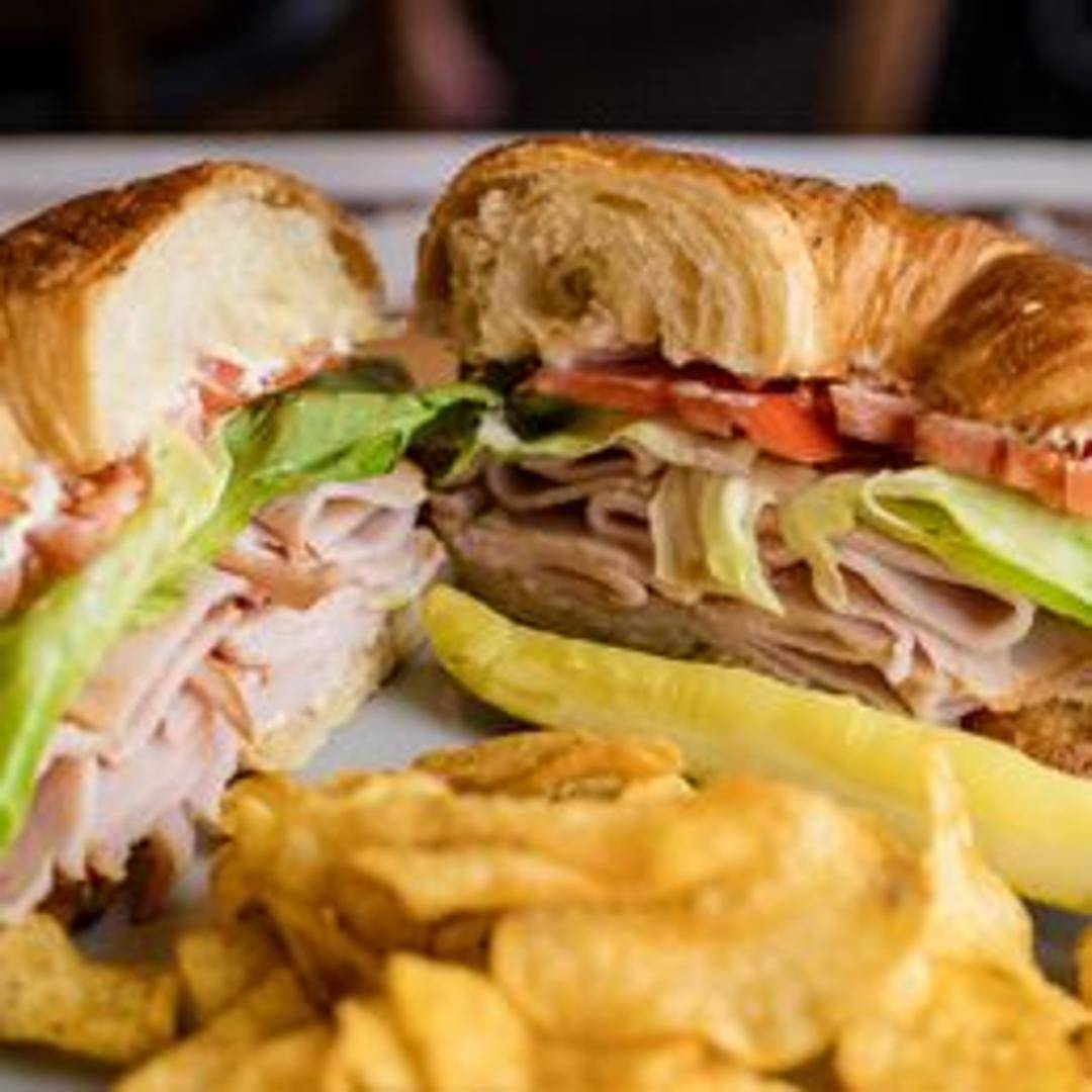 A classic sandwich featuring sliced turkey breast, crisp lettuce, ripe tomatoes, and your choice of mayonnaise, mustard, or both, served on toasted bread.
