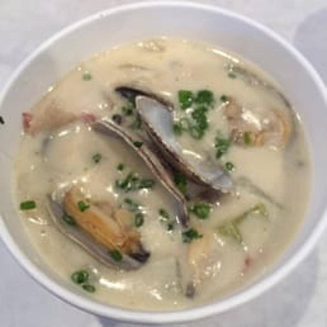 A creamy and comforting New England-style clam chowder, loaded with tender clams, potatoes, and seasonings. A hearty and flavorful soup perfect for any seafood lover.