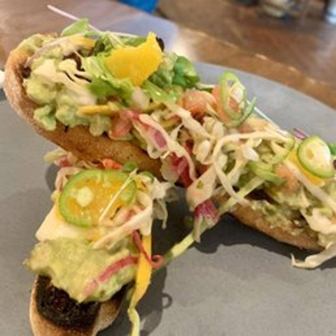 Our elevated Avocado Toast features creamy, ripe avocado smashed on a slice of artisanal sourdough, lightly toasted to perfection. It's seasoned with a delicate blend of flaky sea salt, fresh cracked black pepper, a hint of chili flakes, and finished with a drizzle of high-quality olive oil and a sprinkle of microgreens, offering a fresh and vibrant start to your day or a light, satisfying bite.