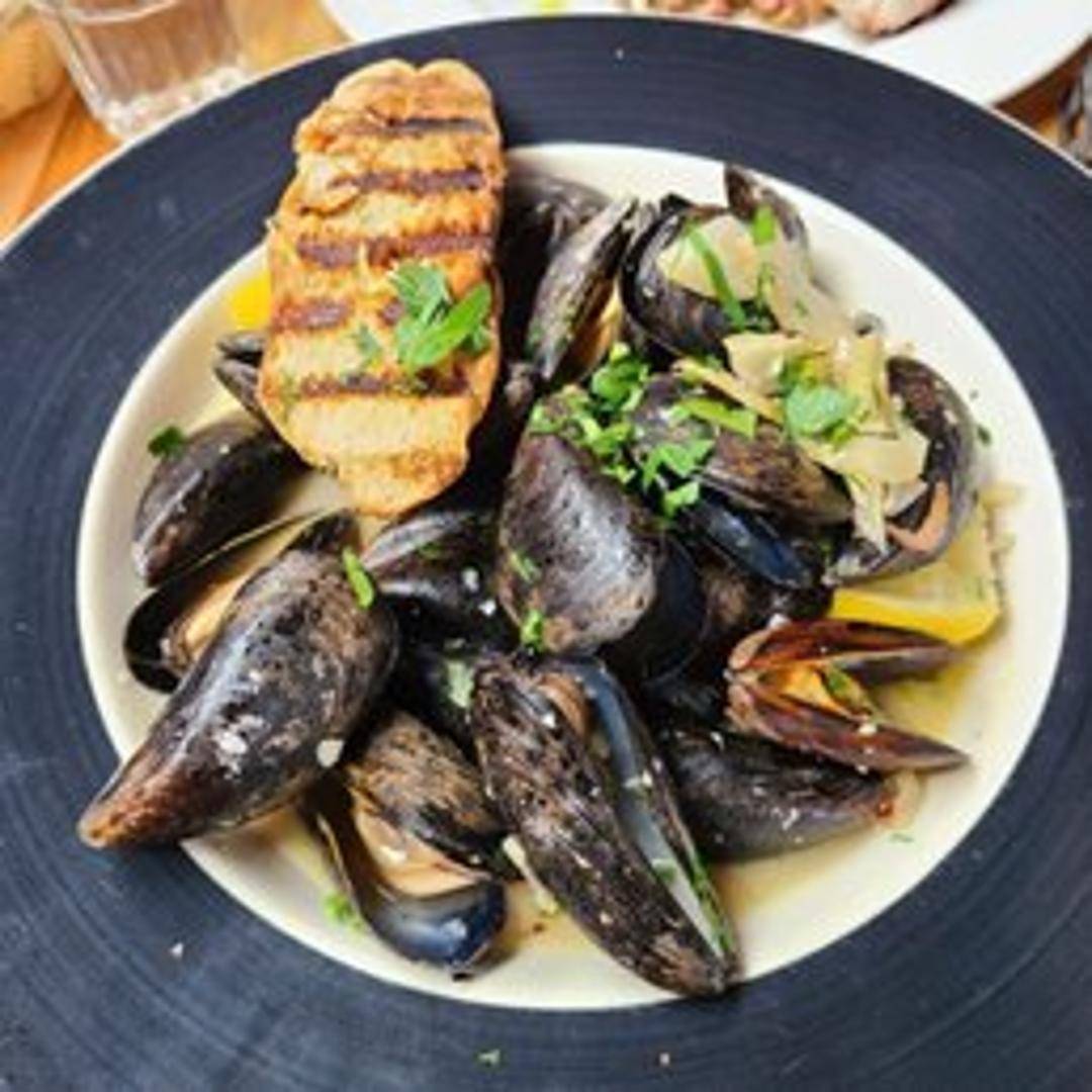 Fresh mussels steamed in a flavorful tomato-based broth with garlic, herbs, and a hint of spice, reflecting the flavors of Sicily.
