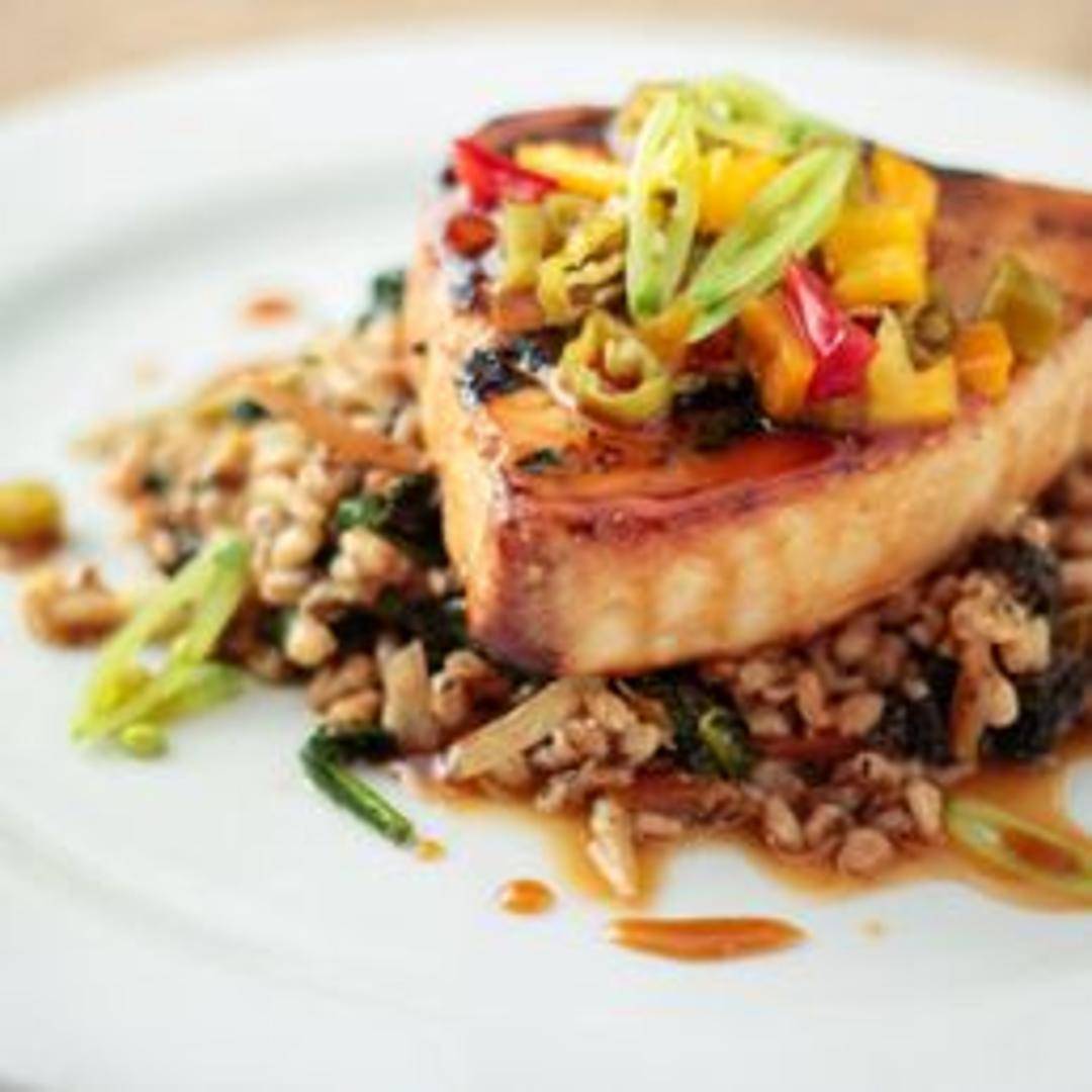 A thick cut of fresh swordfish, grilled or pan-seared to your liking. Seasoned simply to enhance its natural flavor. Served with [Insert accompaniments if known, e.g., a choice of sides, a specific sauce, or a vegetable medley]. A hearty and satisfying seafood selection.